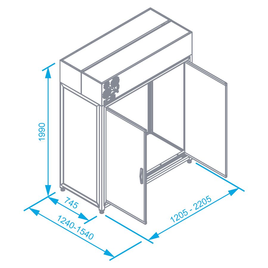 Rozmery: 142 × 87,5 × 209 cmObjem (v l ): 954