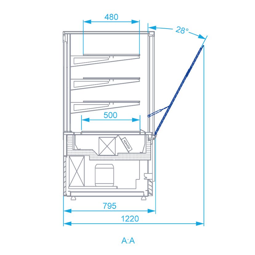 - Ventilované chladenie zo vzduchovými clonami zabezpečí aby koláče ostali čerstvé aj pri otvorení dverí
