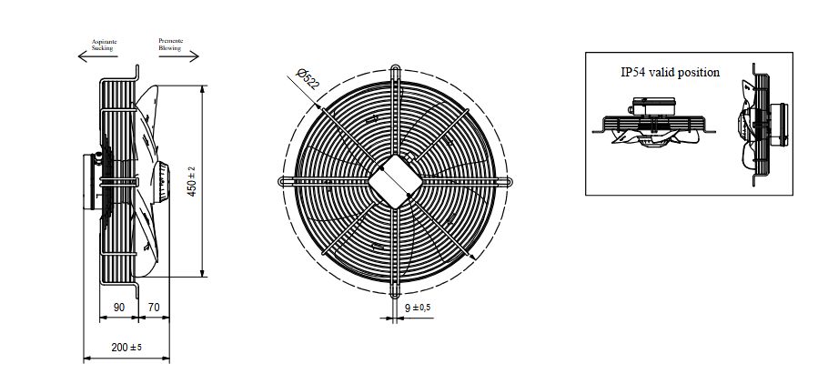 - Ventilátor sací priemer vrtule 450 mm